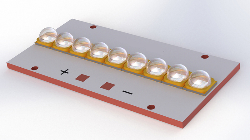 Преимущества: Высокая плотность мощности, хорошее рассеивание тепла, подходит для размещения массивов в лампах для отверждения полос;