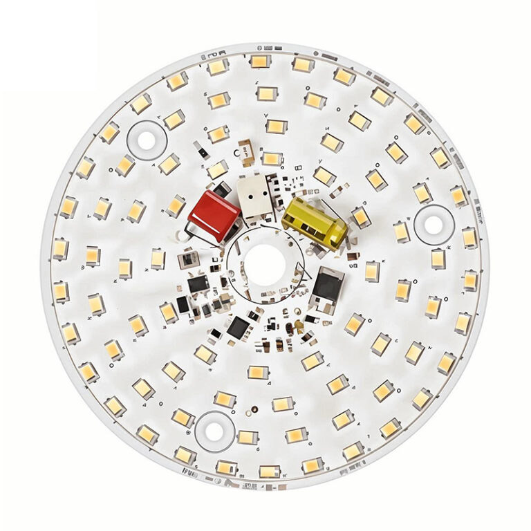 Модуль светодиодной платы PCB DOB (Driver-on-Board) представляет собой решение для светодиодного освещения, которое объединяет драйвер и источник света. В традиционных системах светодиодного освещения плата светодиодного освещения и схема драйвера обычно разделены, причем драйвер отвечает за преобразование мощности переменного тока в мощность постоянного тока, подходящую для светодиодов. Модули световых плат DOB объединяют эти функции на одной печатной плате, упрощая процесс проектирования и установки.